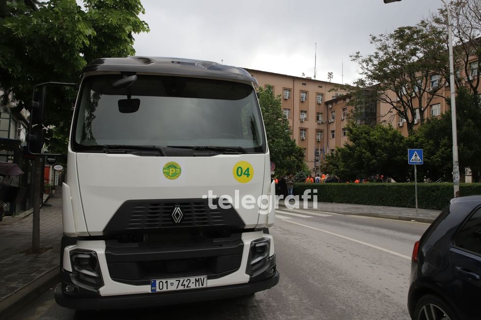 Punëtorët e kompanisë "Pastrimi" në grevë, me kamionë për grumbullimin e mbeturinave para komunës