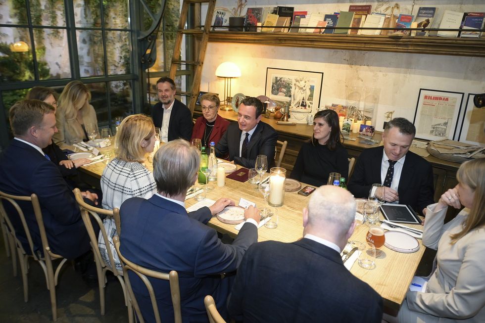 Kryeministri në detyrë i Republikës së Kosovës, Albin Kurti, takoi një natë më parë në një darkë pune përfaqësuesen e Lartë të Bashkimit Evropian për Punë të Jashtme dhe Politikë të Sigurisë, Kaja Kallas të cilët diskutuan për marrëdhëniet ndërmjet Kosovës dhe BE-së, agjendën e reformave evropiane dhe Planin e Rritjes.