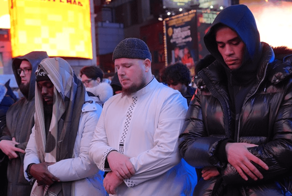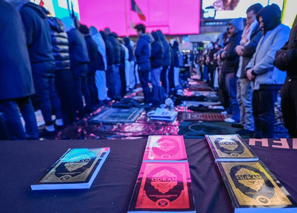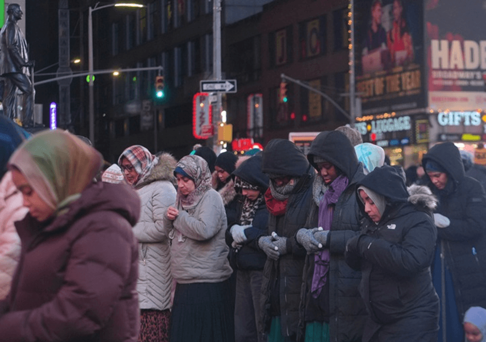 Myslimanët u mblodhën në cep të Broadway dhe 7th Street, zonën më të ngarkuar të Times Square.