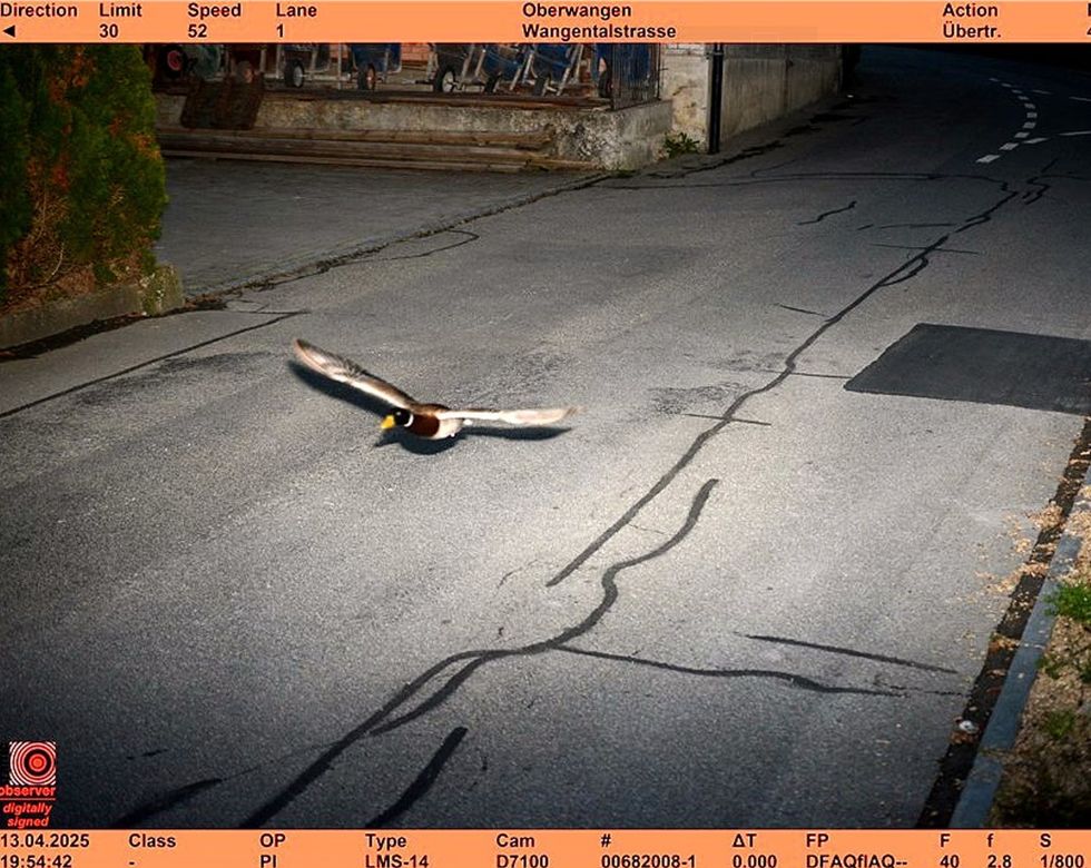 Policia në qytetin Koniz, pranë Bernit, u habit kur, ndërsa shqyrtonin imazhet e radarit të një muaji më parë, zbuloi se midis shkelësve të zbuluar nga sistemi i kontrollit të shpejtësisë ishte një rosë e egër, njoftuan autoritetet komunale në faqen e tyre në Facebook.