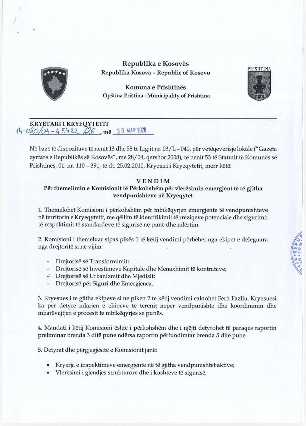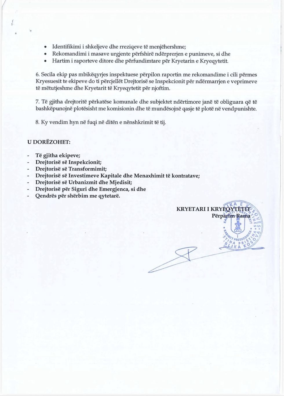 Sipas tij, komisioni do të përbëhet nga ekspertë të urbanizmit, inxhinierë të licencuar dhe përfaqësues të emergjencave, të cilët do të nisin menjëherë inspektimet në terren.