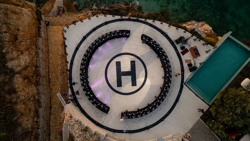 Kur dielli nisi të zbriste mbi det, gjithçka u kthye në spektakël. Pista e helikopterit në Marina Bay u shndërrua në një skenë gala.