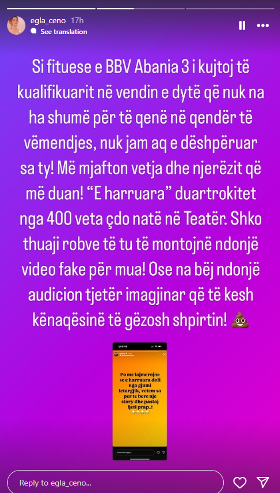 Fituesja e Big Brother VIP Albania 3 reagoi po ashtu duke thënë se nuk kishte fare lidhje me të.