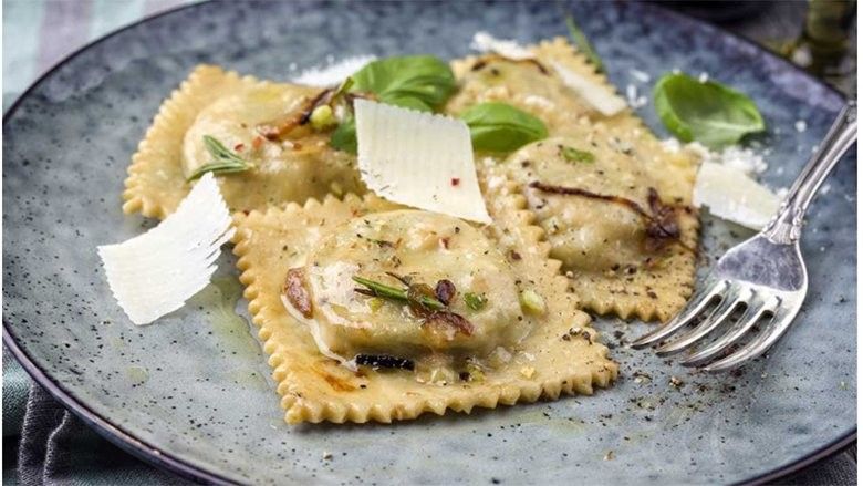 E lëmë salcën mënjanë, dhe gatuajmë raviolit duke i hedhur në ujë të vluar përreth pesë minuta. I ziejmë, më pas i kullojmë dhe i përziejmë me salcën e përftuar më sipër.