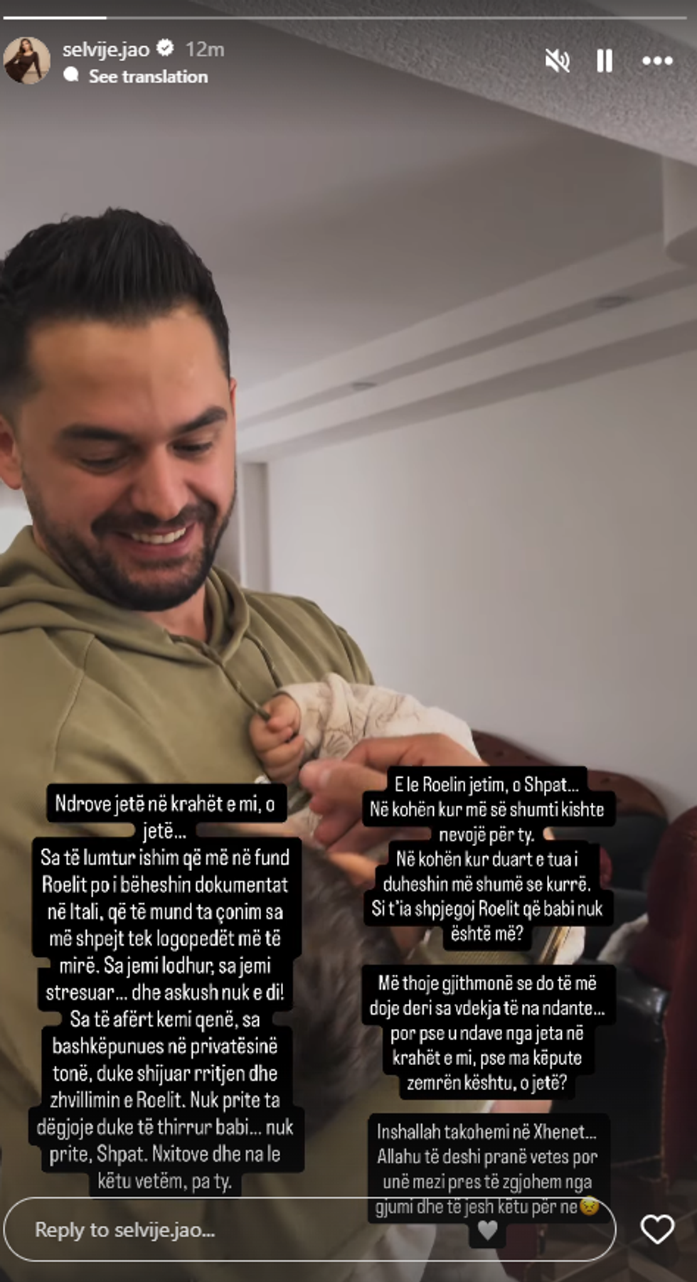 Në postimin e saj, Selvije Jao shpreh pikëllimin e thellë për humbjen e partnerit dhe dhimbjen që ndjen për të birin, i cili tashmë është pa babanë e tij.
