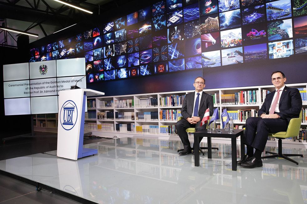 Presidenti i Austrisë, Alexander Van der Bellen e ka dekoruar Presidentin dhe Rektorin e UBT-së, Prof. Dr. Edmond Hajrizi me Medaljen e Artë të Meritave, një çmim që u jepet personaliteteve të larta botërore.