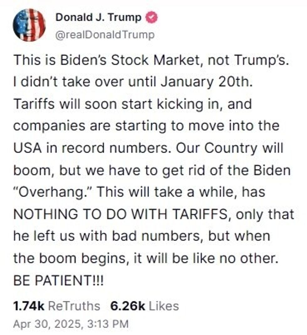 Në këtë mesazh, 78-vjeçari thekson se ai nuk kishte marrë detyrën deri më 20 janar të atij viti dhe se situata aktuale në bursë nuk ka lidhje me politikën e tij.