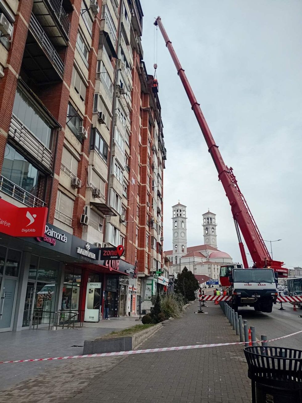Në njoftim thuhet se ekipet e tyre në bashkëpunim me shërbimet përkatëse, janë duke realizuar intervenime teknike të specializuara, me qëllim parandalimin e rrezikut për kalimtarët dhe banorët.