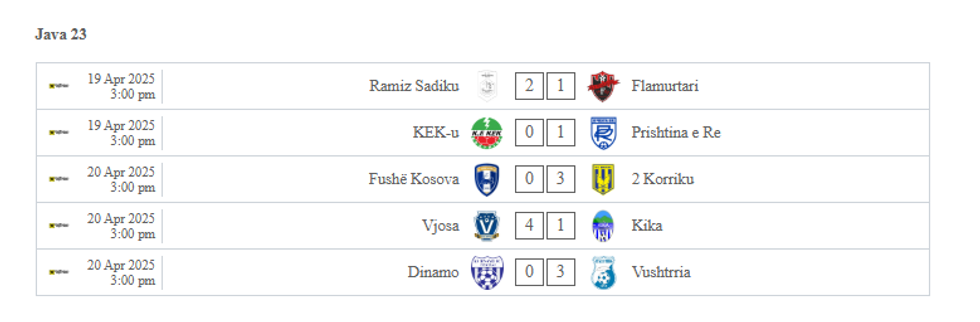 Sa i përket Grupit B, Prishtina e Re ka fituar si mysafir ndaj KEK-ut me rezultat 1-0.