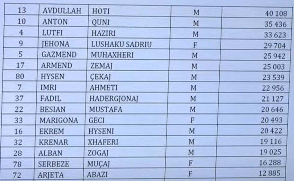 Në 5-shen me më shumë vota janë edhe Hykmete Bajrami dhe Avdullah Hoti.