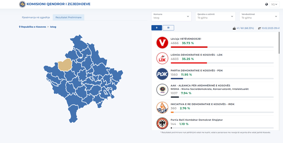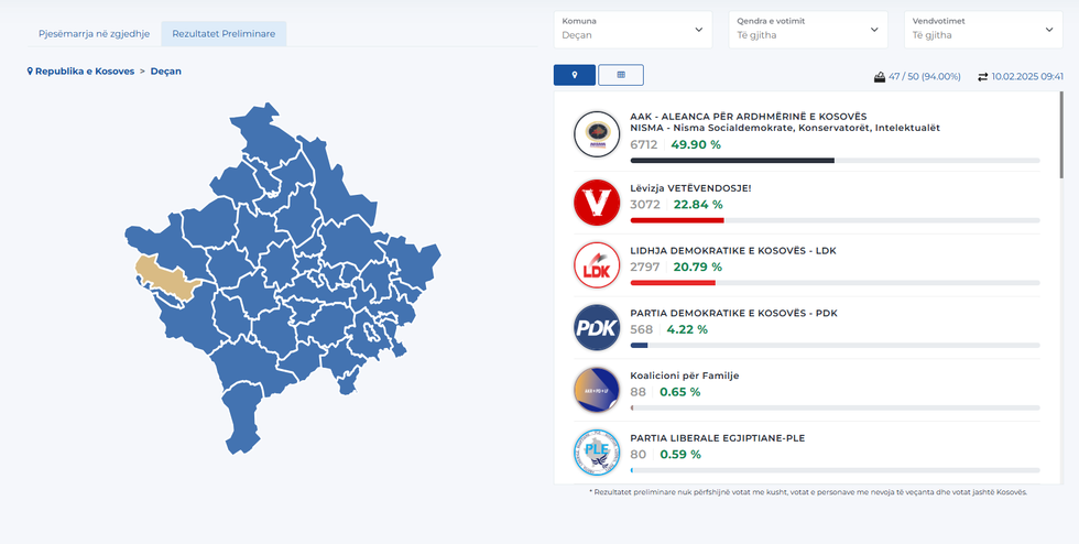 Rezultatet preliminare – këto janë përqindjet e numërimit të votave nga KQZ në rajonin e Pejës