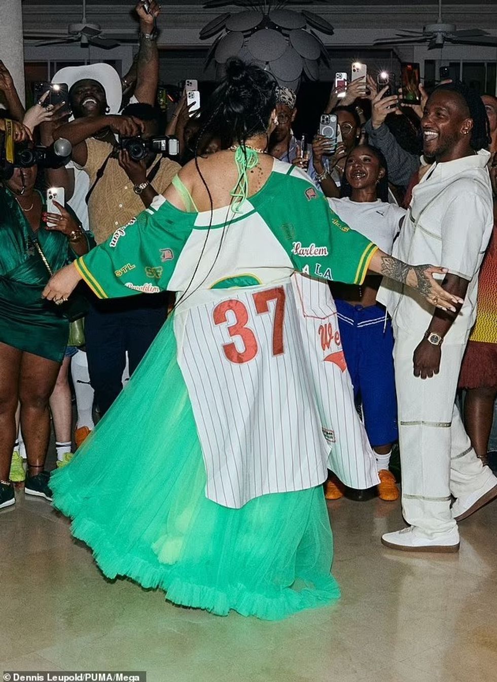 Rihanna, e cila është nëna e dy djemve me reperin ASAP Rocky, u fotografua duke kërcyer gjatë natës më 11 mars.