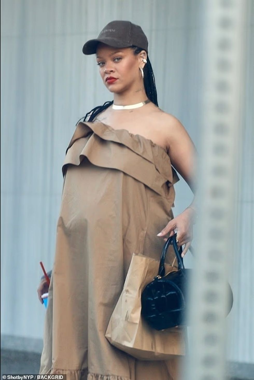 Me një gotë pijesh freskuese në dorë, ajo tregoi se mund të jetë një ikonë mode edhe kur i përgjigjet një dëshire shtatzënie.