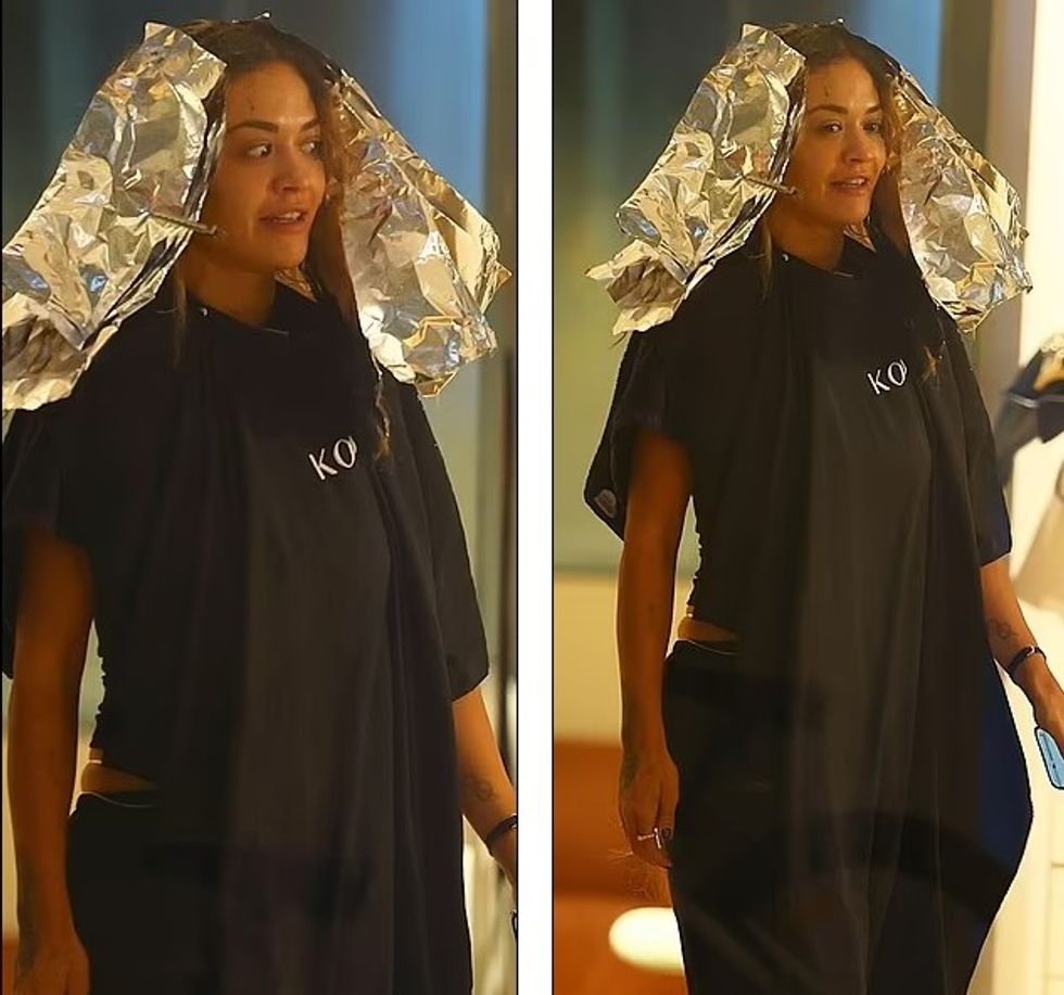 Rita Ora duket se ka pësuar një transformim dramatik në pamje, pasi u fotografua me flokët mbuluar me folie në një sallon bukurie në Bondi, Australi.