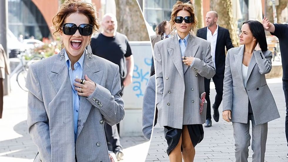 Rita nuk është e panjohur me udhëtimet nëpër botë – javën e kaluar u shfaq me një buzëqeshje të madhe në fytyrë gjatë një paraqitjeje në Düsseldorf të Gjermanisë, ku veshi një kombinim interesant. Ajo kishte veshur një xhaketë të madhe elegante, të kombinuar me një këmishë të kaltër të çelët dhe kravatë, duke e kompletuar pamjen me një fustan të shkurtër të zi.