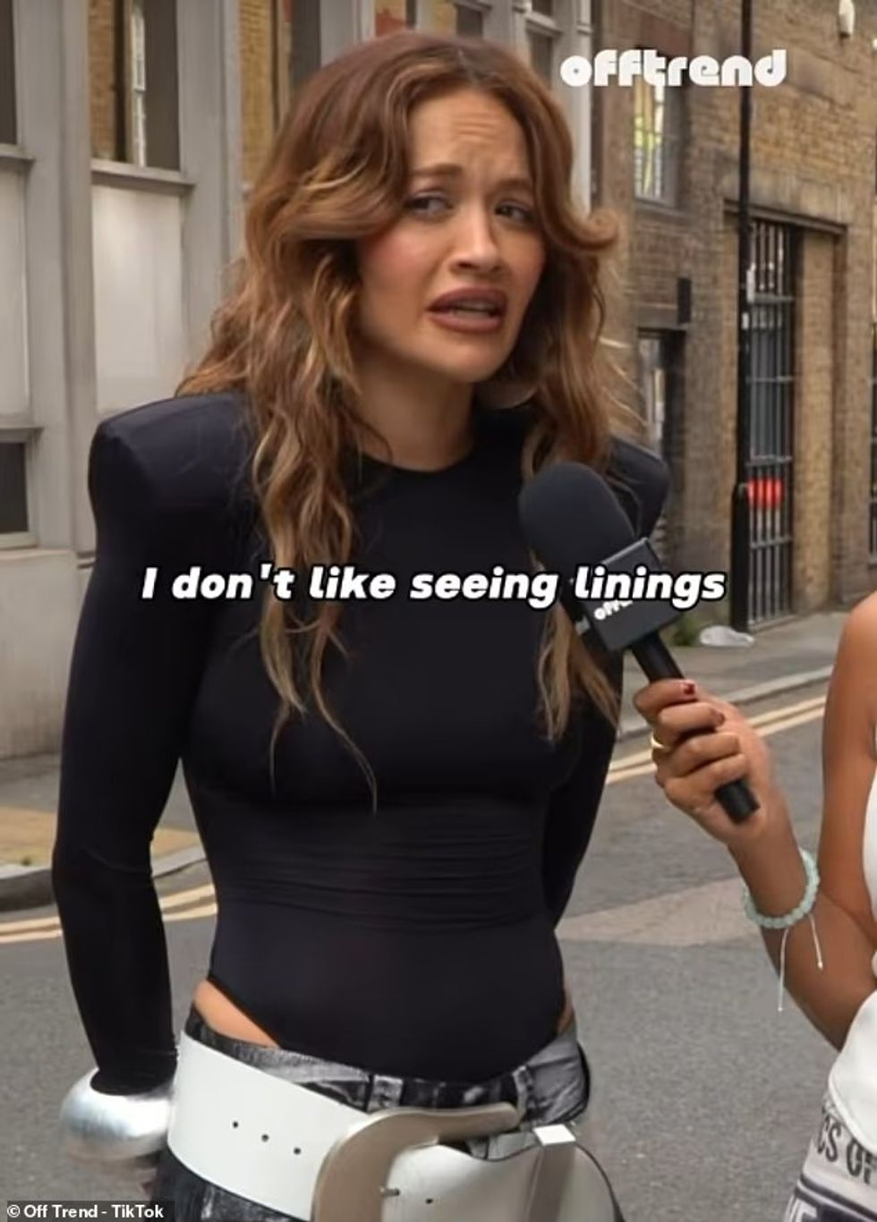 "Nuk më pëlqen kur duken astaret në veshje. Nëse ke një fund të gjatë, nuk dua të shoh që astari ndalet në mes të këmbës", tha ajo. Intervistuesja u pajtua me të, duke shtuar: "O të jetë tërësisht i tejdukshëm, ose të mbulojë gjithçka".