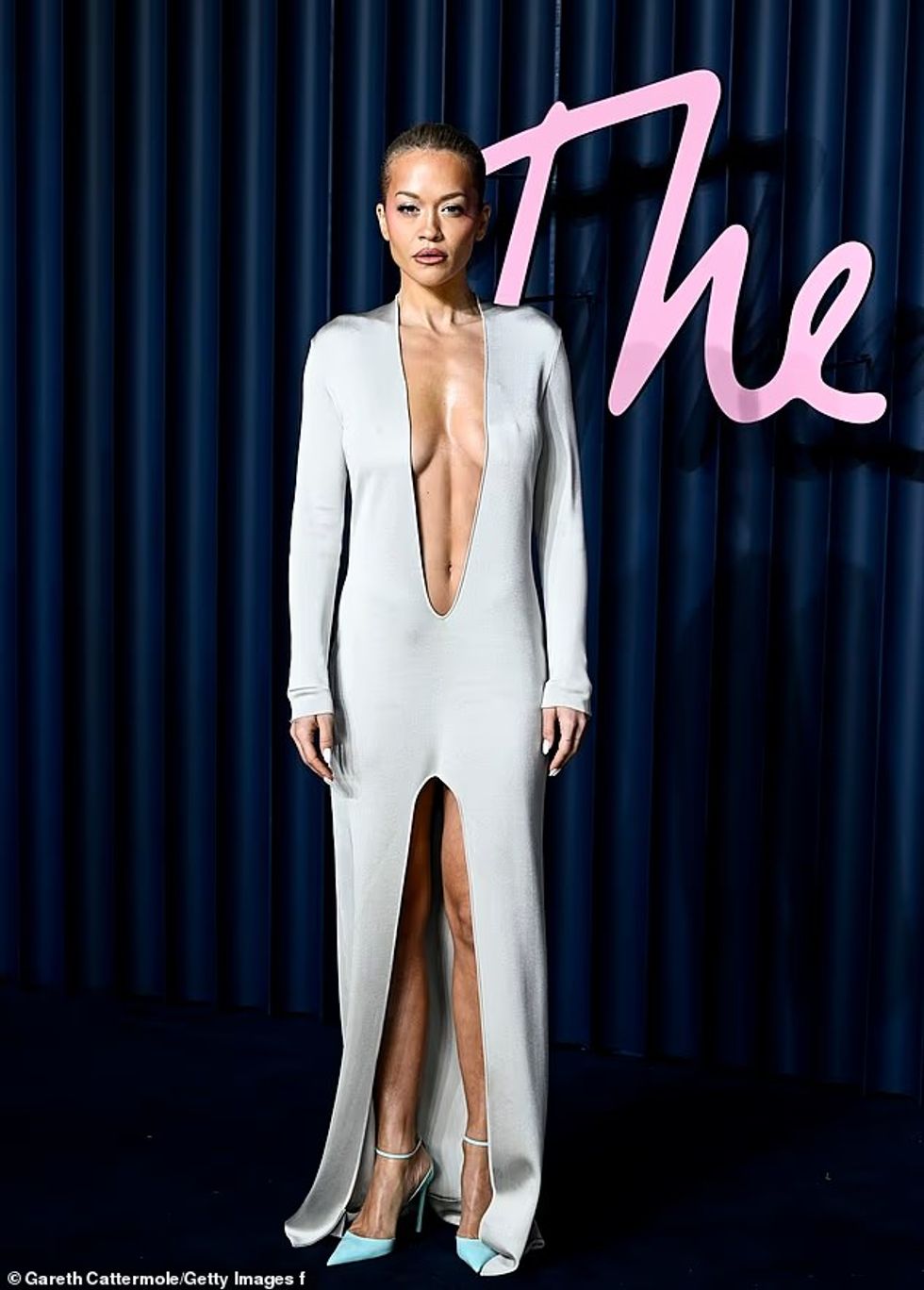 Ajo e kombinoi këtë veshje ultra-moderne me flokë të tërhequr pas dhe grim të realizuar nga Charlotte Tilbury, duke pozuar me gjithë vetëbesim përgjatë tapetit blu të Royal Albert Hall.