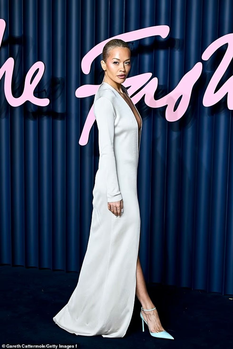 Rita Ora shkëlqeu fuqishëm në tapetin blu të mbushur me yje gjatë Fashion Awards të së hënës mbrëma.