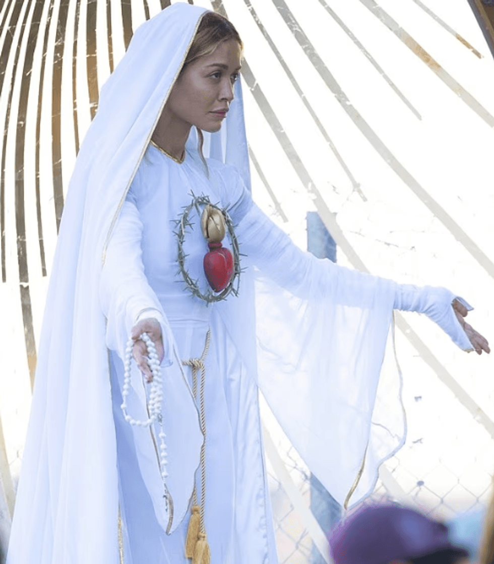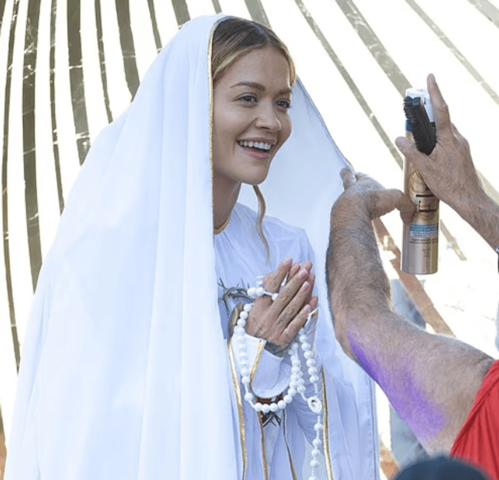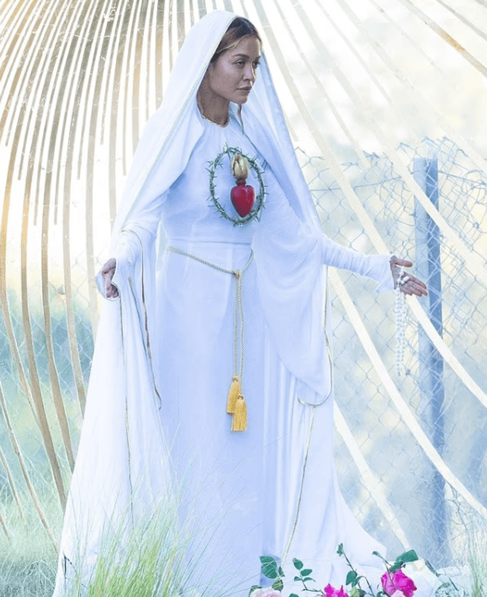 Rita Ora shfaqet në disa poza kontroverse, ndërsa shndërrohet në Virgjëreshën Mari për një set fotografik