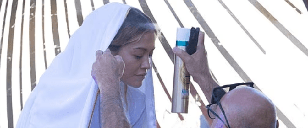 E rrethuar nga një grup njerëzish, duke rikrijuar një skenë të krishterë, pamja e guximshme e yllit të popit u realizua nga fotografi legjendar David LaChapelle, i cili më herët ka fotografuar yje si Britney Spears, David Bowie, Michael Jackson dhe Tupac.