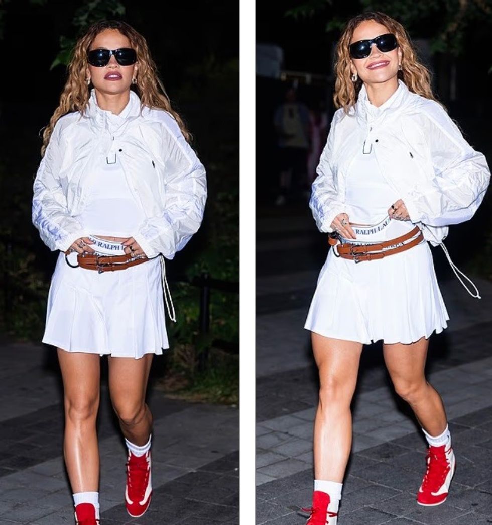 Më herët gjatë ditës, Rita ishte fotografuar duke eksploruar qytetin me metro, veshur me një bluzë të bardhë transparente me mëngë të gjata, nën të cilën kishte një bralette të bardhë që i nxirrte në pah barkun e tonifikuar.
