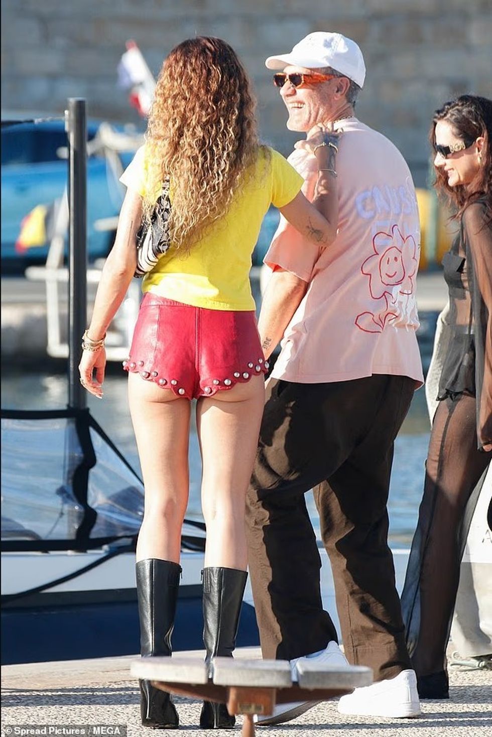 Këngëtarja 34-vjeçare tërhoqi vëmendjen me pantallona të ngushta prej lëkure dhe një bluzë të verdhë të ndezur, të kombinuara me çizme të zeza dhe aksesorë të spikatur si çanta me print zebre dhe syze dielli të mëdha.