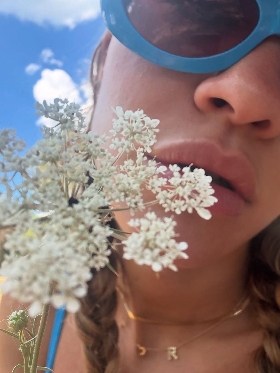 Një tjetër imazh prek më shumë anën intime dhe natyrale të artistes, ku ajo pozon me një lule të bardhë para fytyrës, duke treguar një ndjeshmëri artistike dhe lidhje me natyrën.