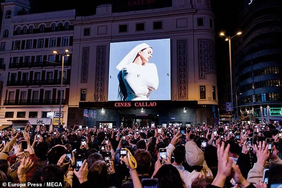 Ylli i muzikës shkaktoi bllokim trafiku të hënën mbrëma, pasi njoftoi drejtpërdrejt në TikTok se do të shkonte në sheshin qendror Callao në Madrid për një “surprizë”, në kuadër të prezantimit të kopertinës së revistës LUX, që u shfaq në një ekran gjigant.