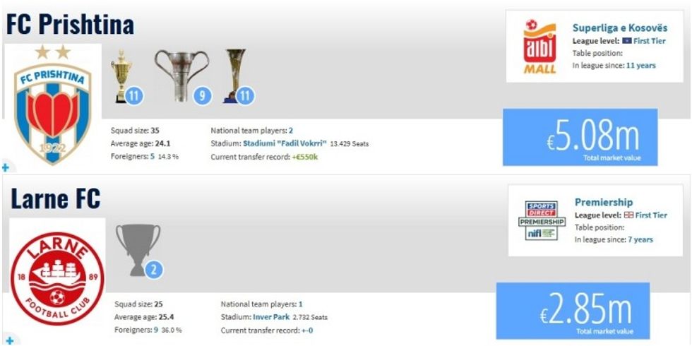Se niveli i skuadrave nuk ishte i barabartë, e tregon fakti që vlera e ekipit të Prishtinës sipas Transfermarkt qëndron 5.08 milionë euro ndërsa ai i Larnes 2.85 milionë euro.