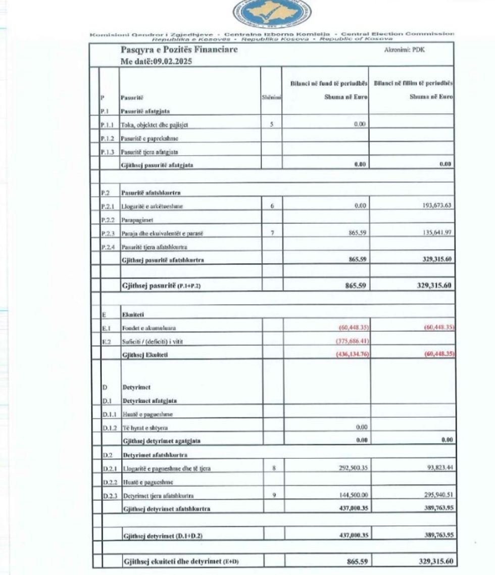 Mirëpo, sipas deklarimit të PDK-së, këto të hyra nuk dolën mjaftueshëm për t’i paguar të gjitha shpenzimet e fushatës, pasi ka shpenzuar 375 mijë e 686 euro më shumë.