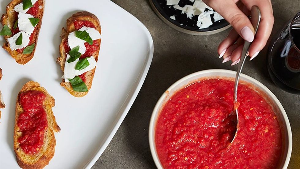 Salcë verore me domate të freskëta, erëza dhe vaj ulliri