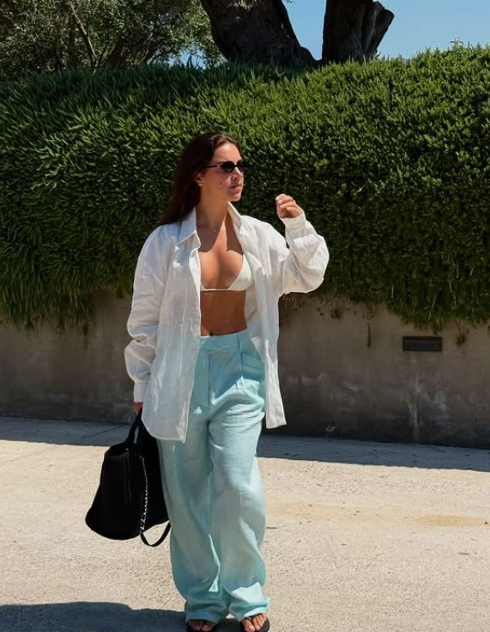 E veshur me një bikini me printe leopardi dhe një palë pantallona të gjëra me një këmishë të bardhë të hapur në një tjetër fotografi, Sara ka treguar edhe një herë shijen e saj të sofistikuar për stilin dhe kombinimin perfekt të elegancës me komoditetin veror.