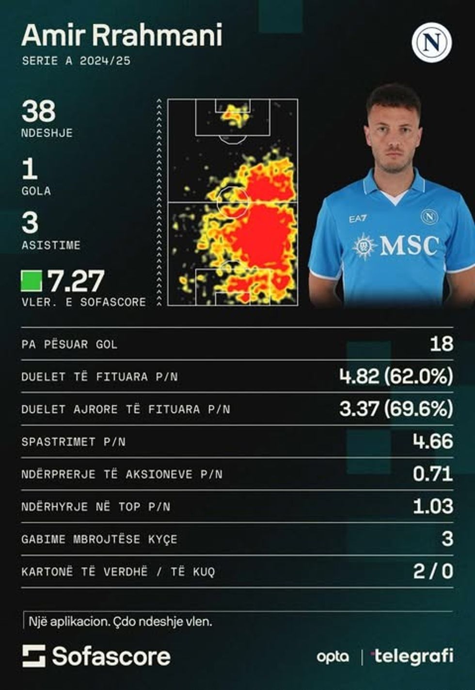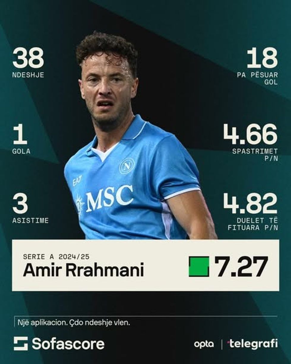 Mbrojtësi shqiptar, Amir Rrahmani, ka përmbyllur një sezon mbresëlënës me Napolin në Serie A 2024/25, duke u përfshirë në formacionin më të mirë të vitit.