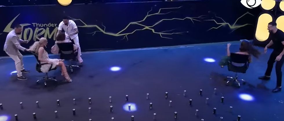 Megjithatë, kishte një pengesë – ato ishin të ulura në karrige rrotulluese dhe djemtë i rrotulluan me shpejtësi të madhe përpara se ato të ngriheshin dhe të nisnin sfidën.