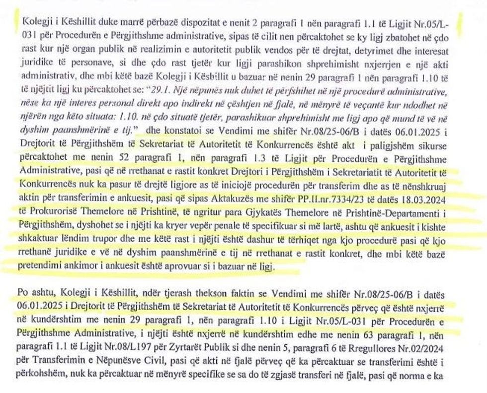 Në arsyetimin e vendimit të Komisionit Disiplinor thuhet se gjatë datave 25 shtator dhe 6 tetor 2025, janë pranuar pesë kërkesa nga drejtues të AKK-së për fillimin e procedurës disiplinore ndaj Elezit.