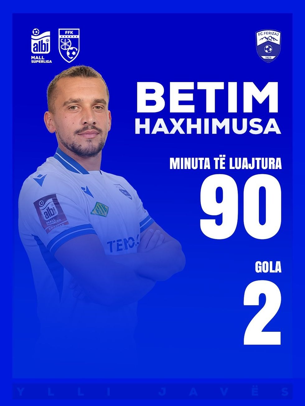 Shënoi dy gola në fitoren e Ferizajt, Betim Haxhimusa më i miri i xhiros së 18-të