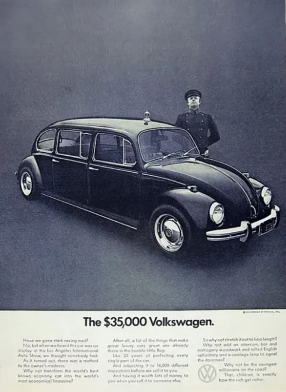 Vetë Volkswagen e promovoi makinën në një fushatë reklamuese me emrin “Beetle prej 35 mijë dollarësh”. Thuhet se në këtë Beetle luksoze është transportuar edhe John Wayne për në ndarjen e çmimeve Oscar në vitin 1970.