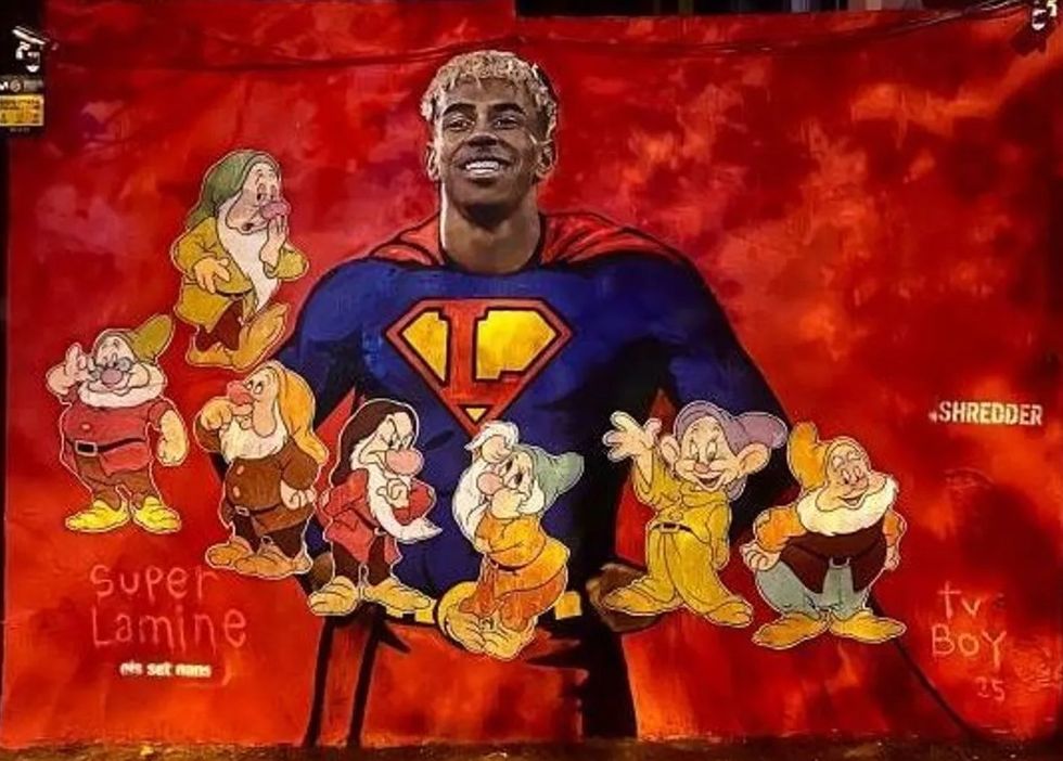 Pas incidentit të parë, murali i ndërtuar me emrin e Yamal në Placa de Joanic të Barcelonës u mbuluan me grafite që errësonin portretin e 18-vjeçarit.