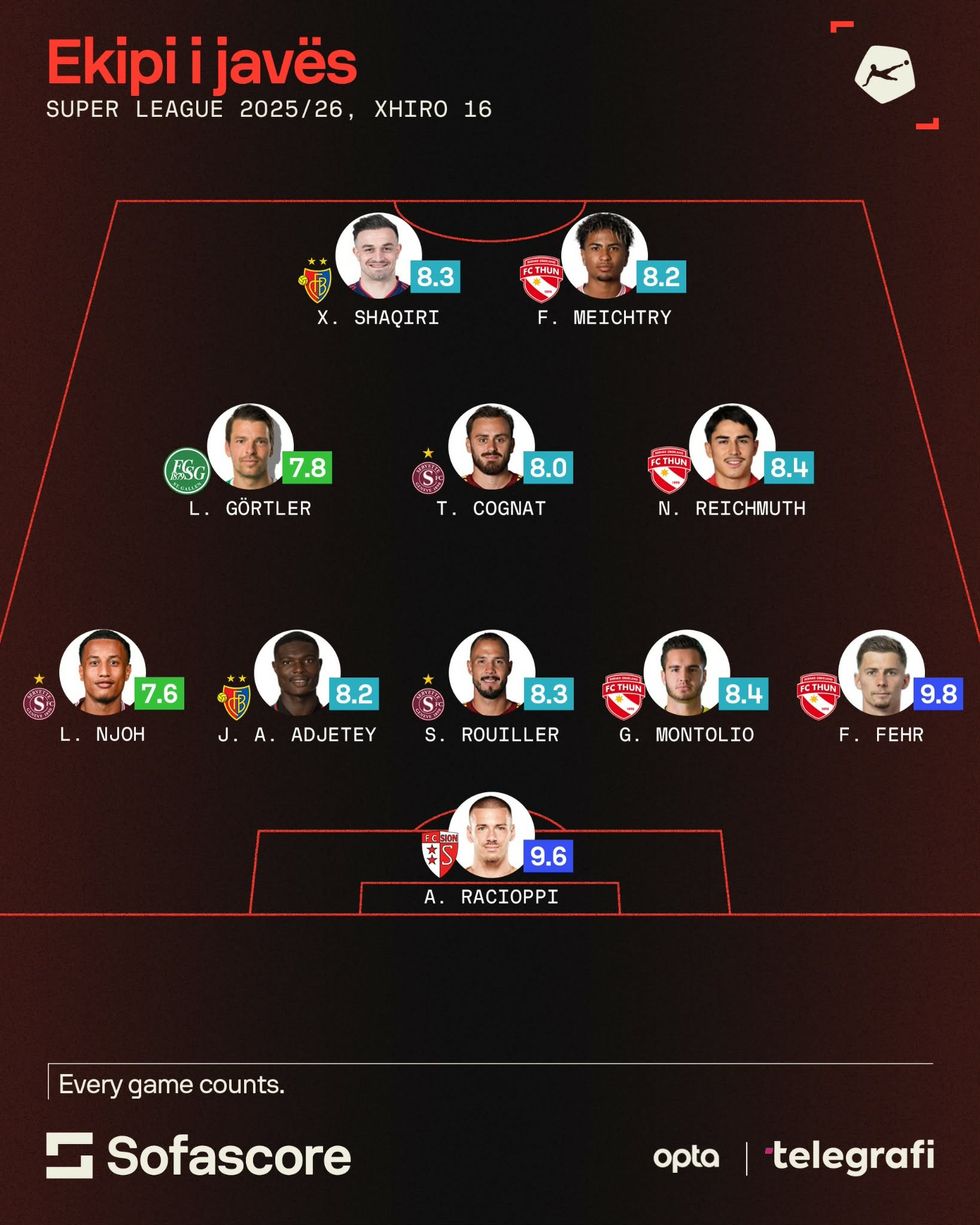 Shaqiri mori notën 8,3 nga SofaScore që ishte një nga notat më të larta në gjithë Superligën e Zvicrës. /Telegrafi/