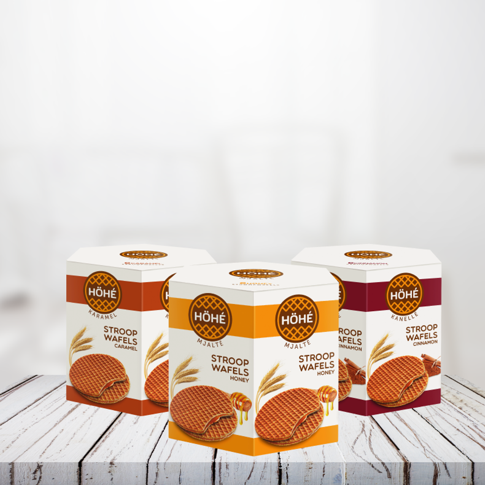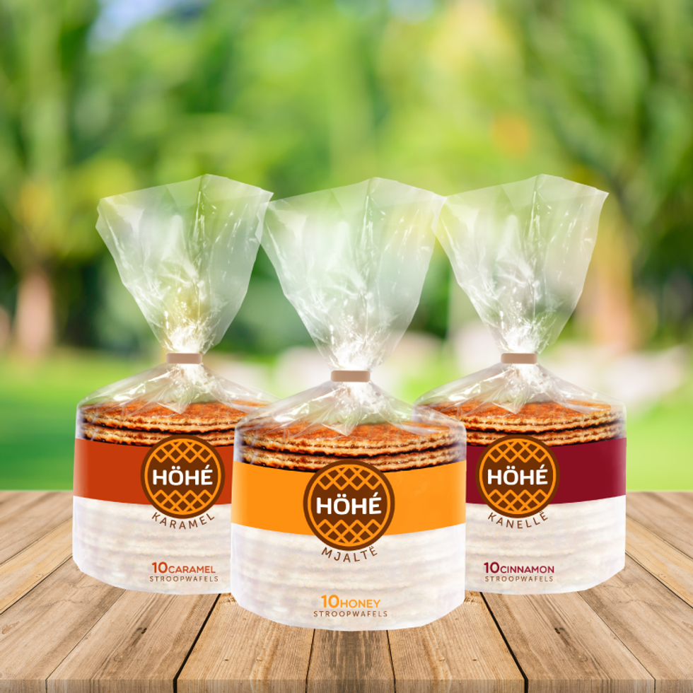HÖHÉ vjen me shije unike, stroop wafels HÖHÉ të mbushura me mjaltë, me kanellë ose me karamel, si dhe Luikse Wafel HÖHÉ.