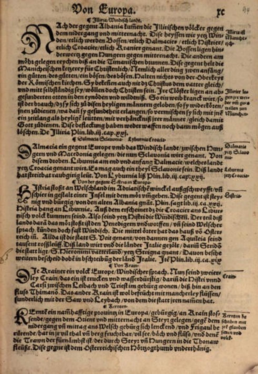 Dalmacia është një krahinë e Evropës pranë territoreve të vendëve (sllave), e vendosur ndërmjet Hungarisë dhe Maqedonisë. Ajo tani quhet Sllavoni. Sipër saj, në skajin e fundit ndodhet Liburnia, ndërsa në fillim është Dalmacia, që tani quhet Kroaci. Edhe kjo mund të konsiderohet një provincë e Sllavonisë. Është një vend me njerëz të egër dhe grabitqarë. Për Liburninë, shih Plinin, Libri 3, Kreu 22. /Telegrafi/