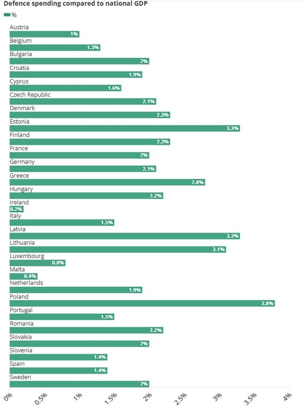 Shpenzimet për mbrojtjen në BE - cilat vende po i përmbahen standardit të NATO-s? 12