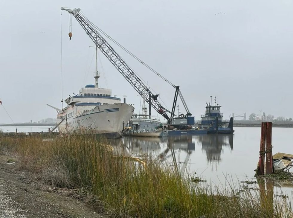 Anija 90 metërshe, e cila u tërhoq nga qyteti i Stockton i Kalifornisë në gadishullin e afërt Mare në fund të vitit 2024, është shkatërruar plotësisht.