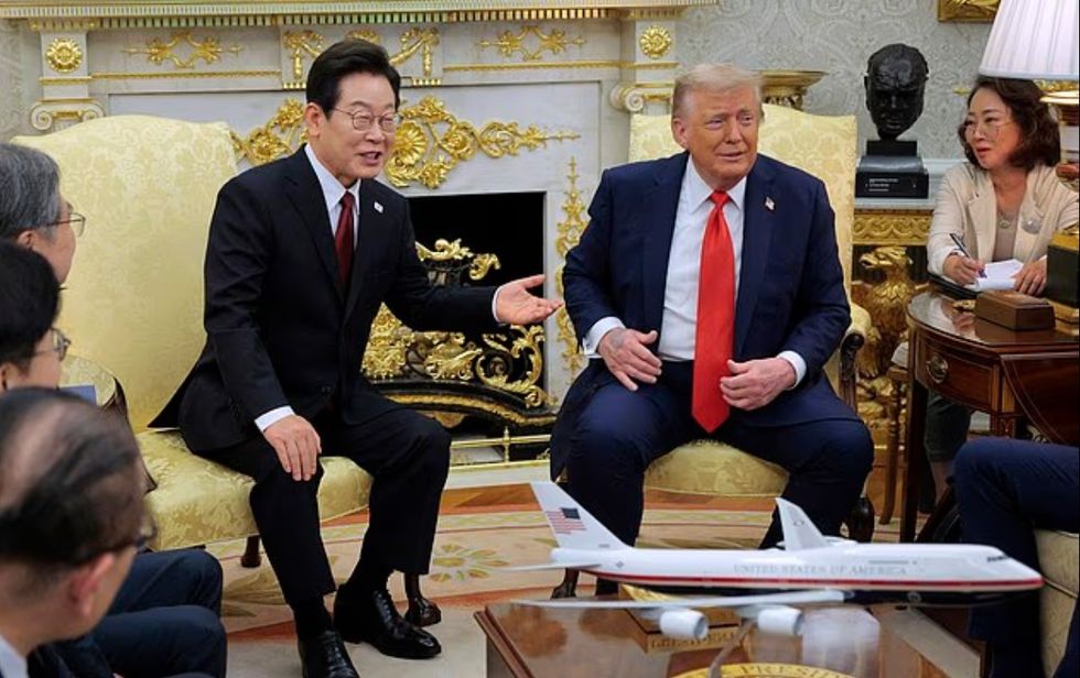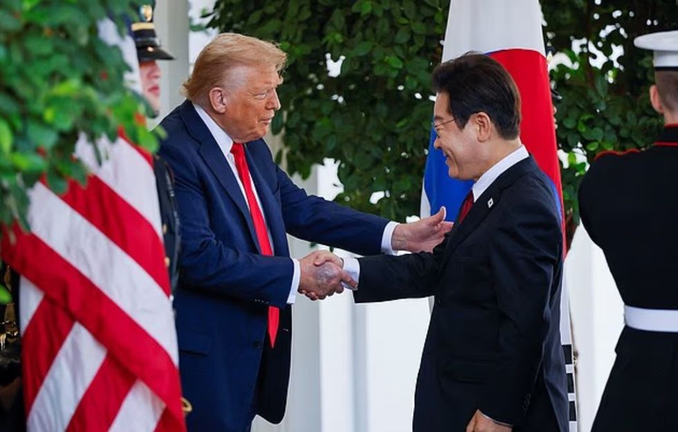 Një mavijosje e konsiderueshme në dorën e djathtë të Trump u zbulua gjatë takimit të tij në Zyrën Ovale me presidentin e Koresë së Jugut, Lee Jae Myung.