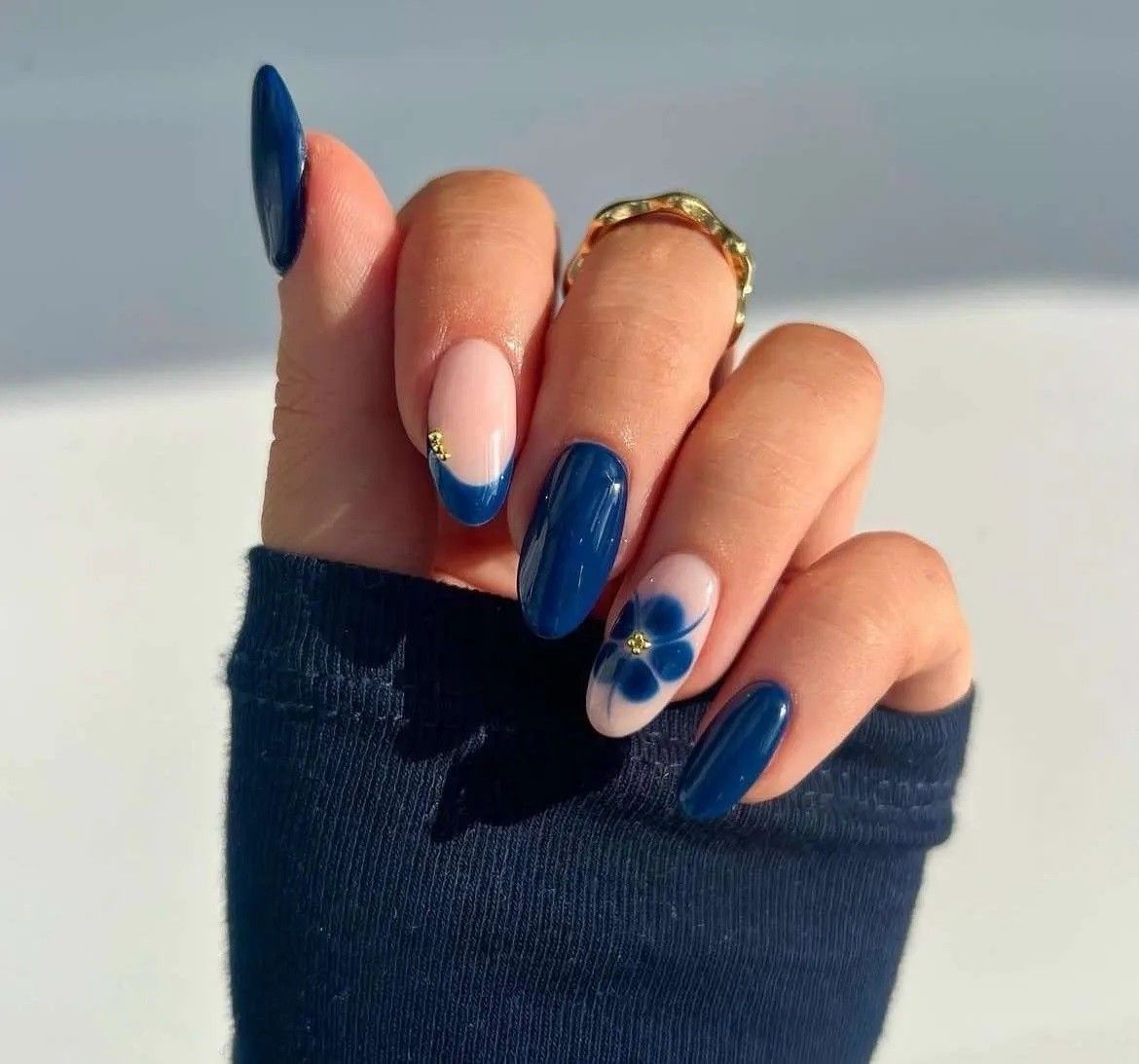 Ky dizajn për thonj kombinon freskinë e blu-së me lulet e pranverës dhe verës. Ju mund të zgjidhni një dizajn të detajuar me lule të vogla në nuanca blu pastel ose modele më të guximshme që kujtojnë vegjetacionin ekzotik të plazhit.