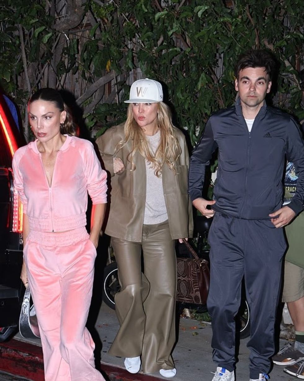 Nga ana tjetër, Kate Hudson zgjodhi një stil sportiv e tërheqës me një kostum lëkure ngjyrë jeshile, të cilin e kombinoi me atlete të bardha dhe një çantë dore vishnje.