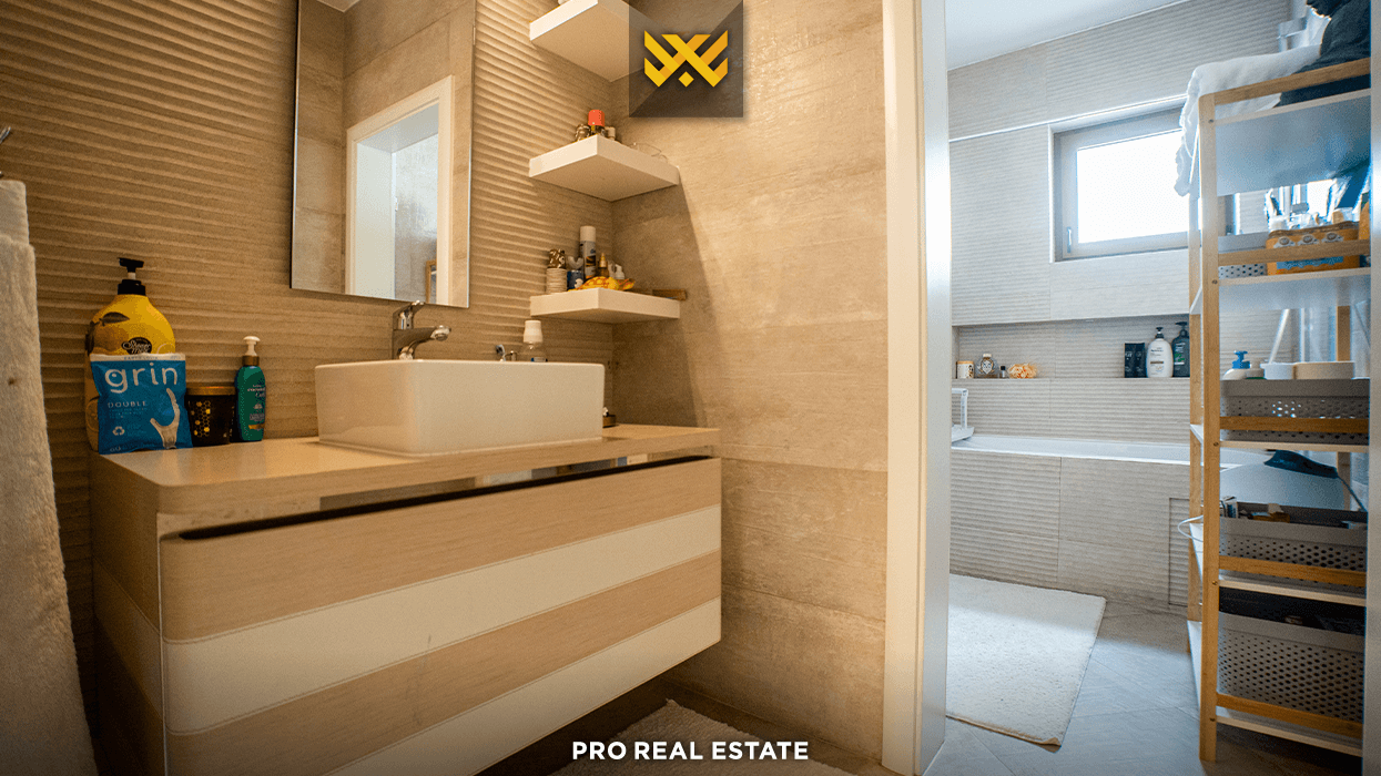 Ndërsa kati i dytë ofron një dhomë gjumi të madhe dhe tre depo funksionale, me sistem ngrohjeje me pompë termike, garazh dhe hapësirë të mjaftueshme për vendparkim, e pajisur me fletë poseduese dhe kontratë që realizohet te noteri.