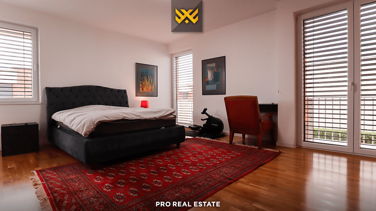 Prona ofron oborr të mirëmbajtur dhe të gjelbëruar, hapësirë të mjaftueshme për vendparkim si dhe garazh, ndërsa është e pajisur me bojler 260L, mbushës elektrik për veturë, elemente Bosch dhe aparat kafeje, me lartësi kate prej 3 metrash që shton ndjesinë e hapësirës dhe komoditetit.