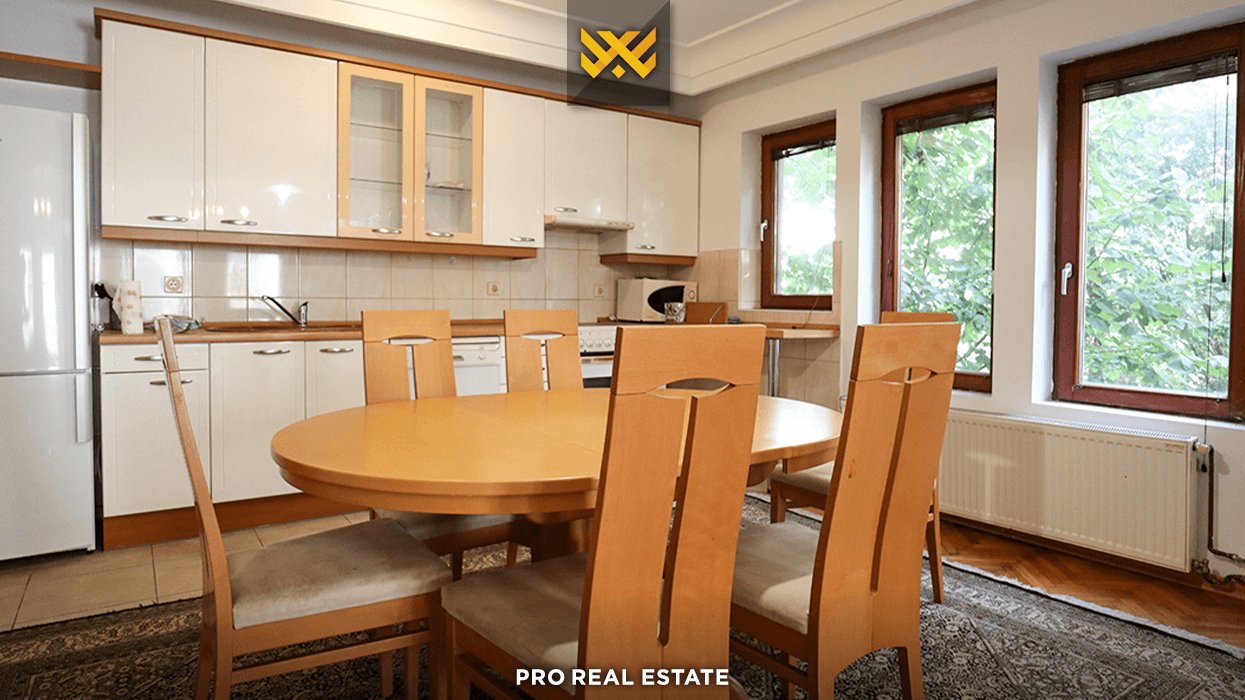 E organizuar me bodrum, përdhes dhe dy kate, kjo pronë ofron dy hapësira qëndrimi ditor, dy kuzhina, katër dhoma gjumi dhe katër banjo, si dhe bodrum prej 100m². Ky organizim e bën të përshtatshme për familje më të mëdha ose jetesë kolektive.