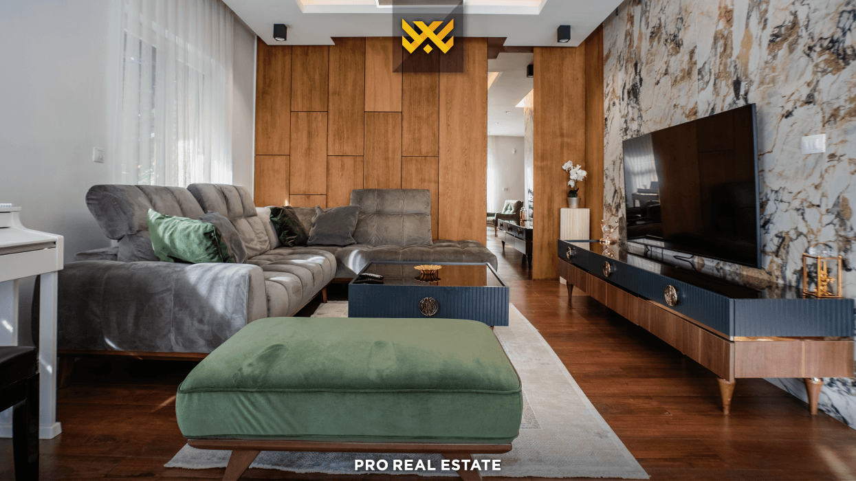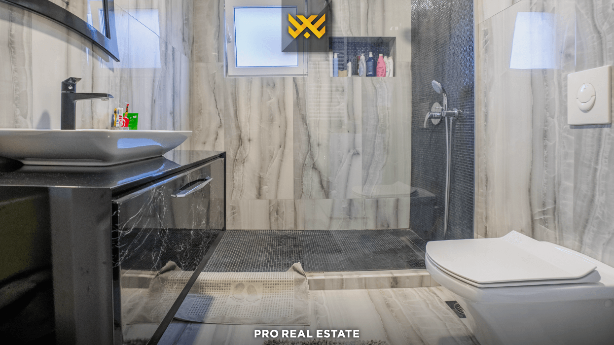 Shtëpia ofrohet e mobiluar në tërësi, me stil bashkëkohor dhe kombinim ngjyrash të balancuara që krijojnë ambient të ngrohtë dhe funksional për jetesë të përditshme.